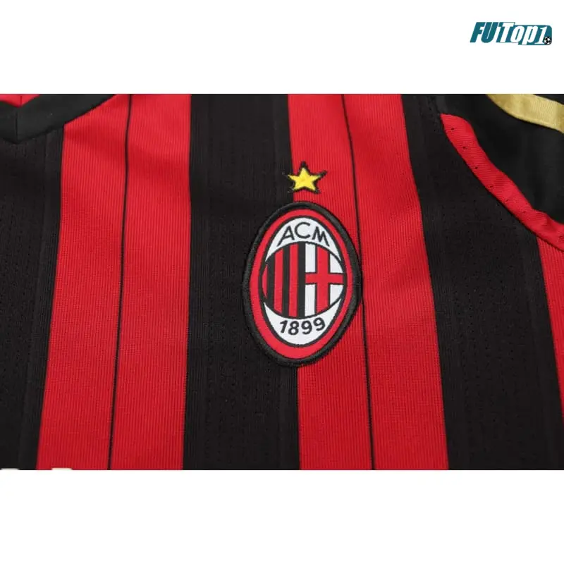 - Diseño Moderno y Clásico: Rojo intenso con rayas negras verticales icónicas, cuello redondo Adidas clásico, escudo bordado retro, inspirado en la era Allegri y Balotelli, audaz y fresco para jóvenes hinchas.