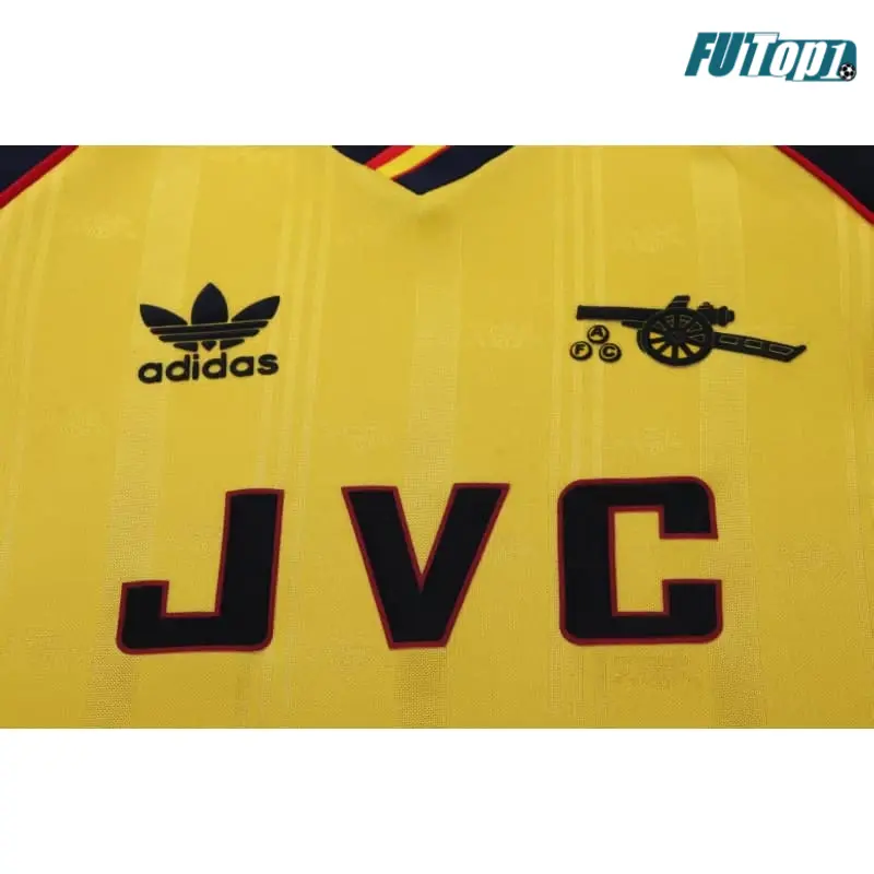 - Diseño Moderno y Clásico: Con el amarillo brillante como base y detalles en negro, esta camiseta rememora la famosa segunda equipación del Arsenal de 1988-90. El escudo bordado del club y el logo le dan un toque auténtico y retro.