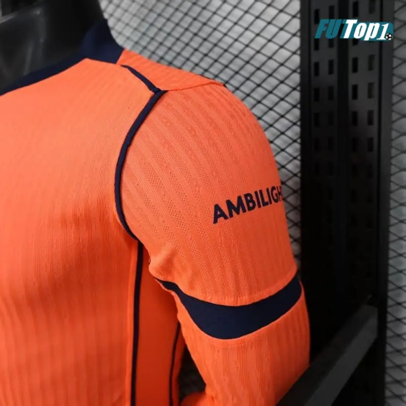 - Diseño Moderno y Clásico: Naranja mango brillante con navy oscuro, plantilla Total 90 retro de los 2000, homenaje al sextuple de 2009, audaz y fresco para jóvenes hinchas.