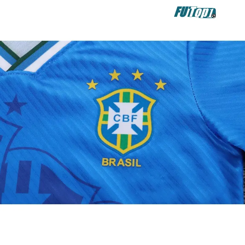 - Diseño Moderno y Clásico: Azul intenso como color principal, con un estilo clásico que recuerda la equipación visitante de Brasil en 1996. Un diseño lleno de personalidad que refleja la creatividad y el carácter alegre del fútbol brasileño, ideal para los pequeños aficionados al estilo retro.