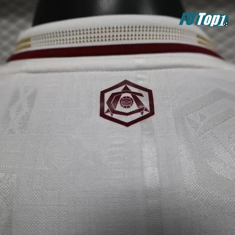 - Diseño Moderno y Clásico: Blanco cremoso off-white con patrones jacquard Art Deco inspirados en la fachada de Highbury, collar polo con rayas granate y oro, elegante y fresco para jóvenes hinchas.