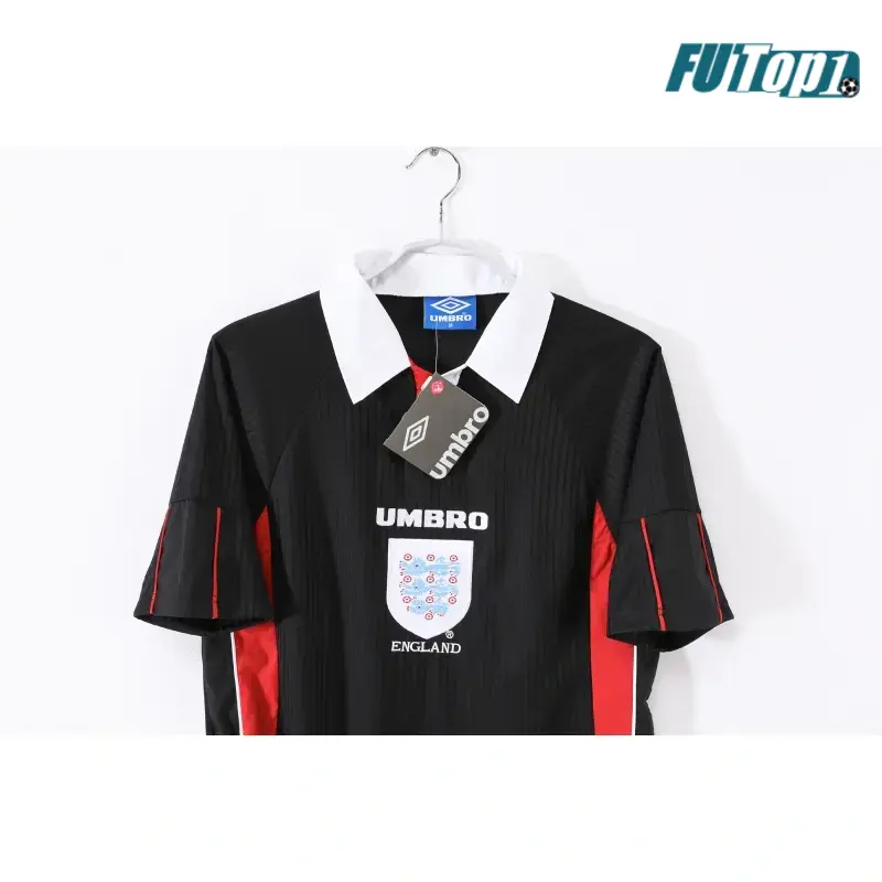 - Diseño Moderno y Clásico: Negro elegante con cuello polo blanco y detallas rojos, inspirado en el Mundial 1998. Estilo retro audaz para jóvenes fans de Inglaterra.