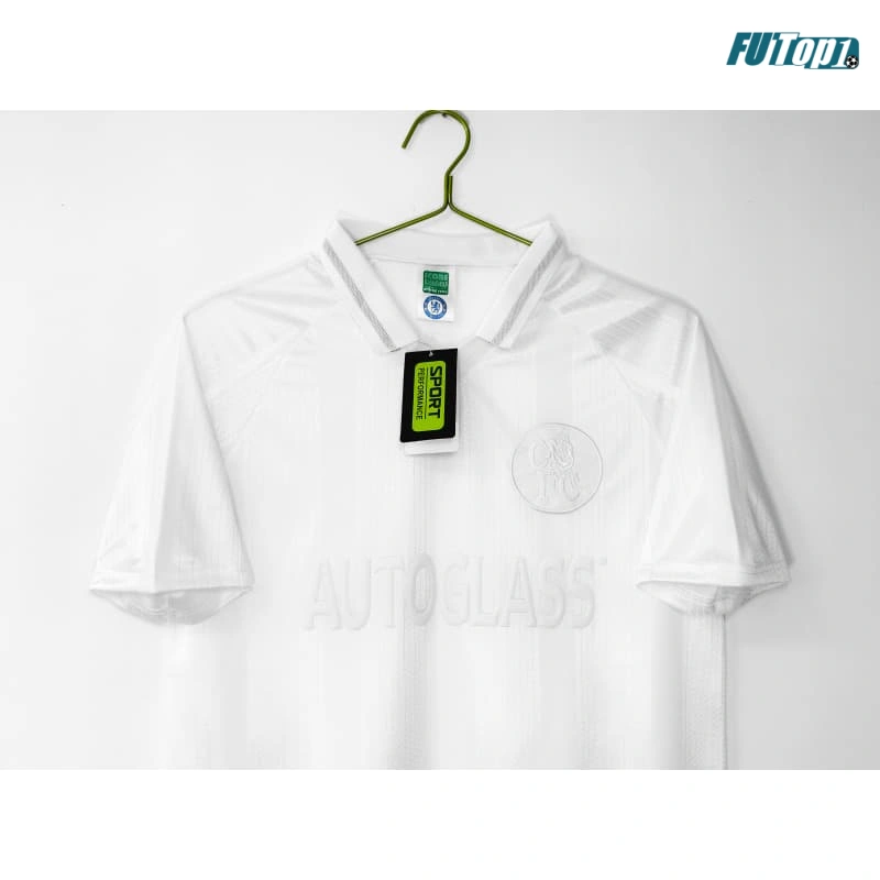 - Diseño Moderno y Clásico: Base blanca clásica con un estilo retro que recuerda una temporada emblemática del Chelsea. Diseño sobrio y elegante, ideal para aficionados que aprecian la historia y el fútbol tradicional.