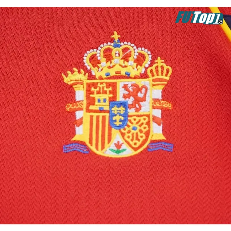- Diseño Moderno y Clásico:Esta camiseta infantil de la selección española de 1998 presenta un vibrante color rojo base con detalles en azul marino y dorado, que evocan los gloriosos días de Raúl, Hierro y Zubizarreta en el Mundial de Francia 1998. Es la opción ideal para los jóvenes aficionados que desean revivir el triunfo de la selección española.