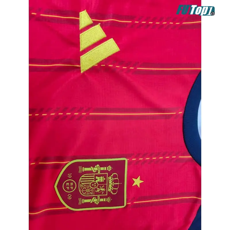 - Diseño Moderno y Clásico: Base roja intensa combinada con detalles en azul que aportan contraste y modernidad. Un diseño dinámico y representativo, pensado para aficionados que quieren lucir los colores de España con orgullo.