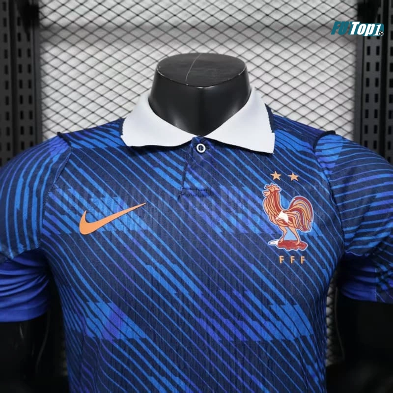 - Diseño Moderno y Clásico: Azul marino profundo con patrón zig-zag en mangas y detalles dorados por el aniversario del título 1998, collar placket con botón grabado "Liberté, Égalité, Fraternité", audaz y fresco para jugadores.