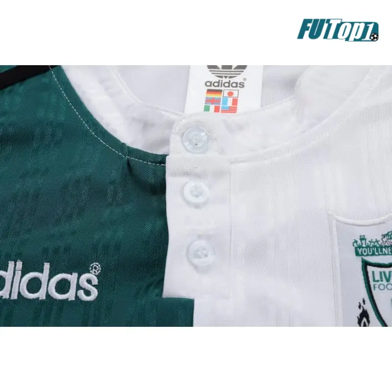 - Diseño Moderno y Clásico:La camiseta réplica Liverpool 2ª Equipación 1995/96 para niños en blanco con patrón verde ecru y detalles negros evoca la era de McManaman y Fowler, ideal para jóvenes reds nostálgicos.